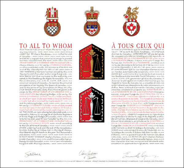 Additional InformationCreator(s)Original concept of Robert D. Watt, Rideau Herald Emeritus, and Bruce Patterson, Deputy Chief Herald of Canada, assisted by the heralds of the Canadian Heraldic Authority. PainterPalina Klimava CalligrapherDoris Wionzek Recipient TypeCivil Institution