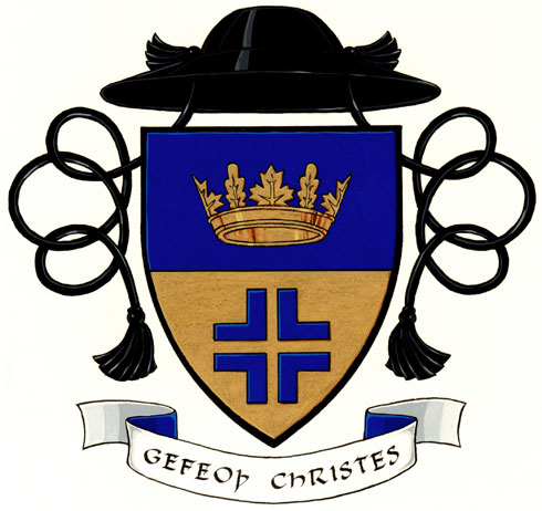 MottoBlazonGEFEOÞ CHRISTES; SymbolismMeaning “Rejoice in Christ”, this exhortation, rendered in Old English, was inspired by Martin Luther’s quote “Be a sinner and sin stoutly, but more stoutly believe and rejoice in Christ!” |