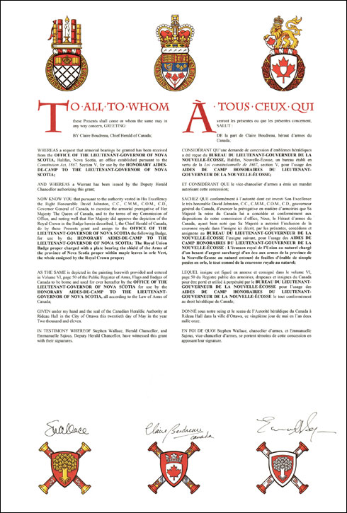 The contents of this Register are intended for research purposes only. The heraldic emblems found in the Register may not be reproduced in any form or in any media without the written consent of the Canadian Heraldic Authority and/or the recipient.