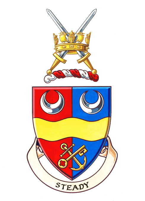 CrestBlazonTwo swords in saltire proper hilts and pommels Or enfiling a naval crown Or; SymbolismNot available; |