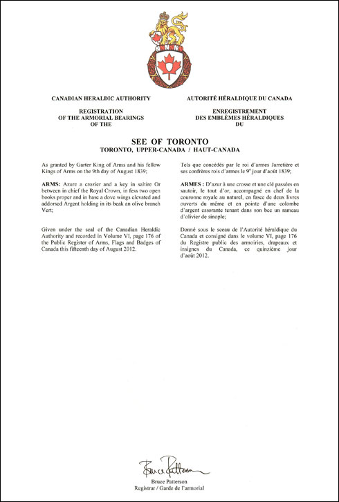 The contents of this Register are intended for research purposes only. The heraldic emblems found in the Register may not be reproduced in any form or in any media without the written consent of the Canadian Heraldic Authority and/or the recipient.