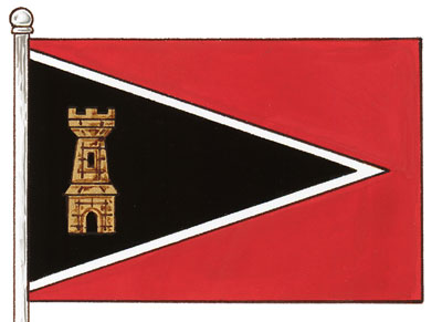 Arms of Bradley James AitchisonBlazonGules on a pile reversed Sable fimbriated Argent between two millrinds a tower Or; SymbolismThe black triangle represents the northward migration of Mr. Aitchison’s ancestors, who came to Upper Canada as Loyalist refugees following the American Revolution. The triangle also resembles a plough moving through soil, a reference to the family’s farming heritage, and a roof peak, representing Mr. Aitchison’s interest in home renovations and real estate. The gold tower reinforces this symbolism. The white border on the triangle resembles the sashes worn by members of military colour parties, and thus symbolizes Mr. Aitchison’s service as a member of the colour party of the Hamilton Branch of the United Empire Loyalist Association of Canada. The gold millrinds represent the family’s farming heritage and Mr. Aitchison’s own employment as a transport truck driver for a livestock feed mill. |