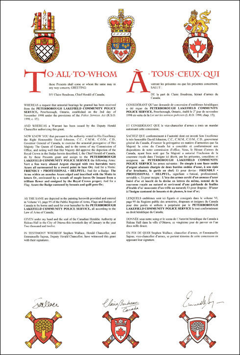 The contents of this Register are intended for research purposes only. The heraldic emblems found in the Register may not be reproduced in any form or in any media without the written consent of the Canadian Heraldic Authority and/or the recipient.