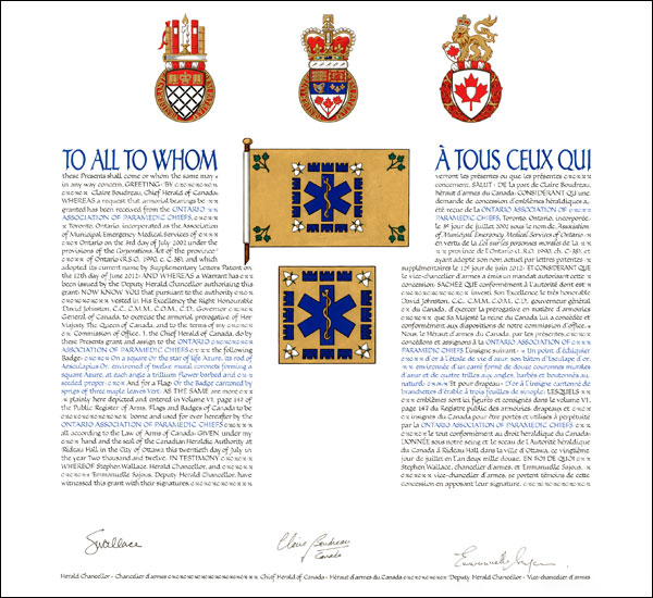 The contents of this Register are intended for research purposes only. The heraldic emblems found in the Register may not be reproduced in any form or in any media without the written consent of the Canadian Heraldic Authority and/or the recipient.