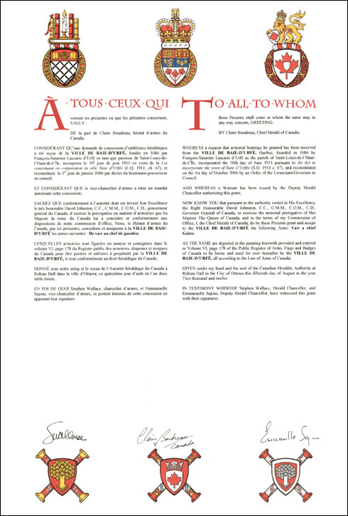 The contents of this Register are intended for research purposes only. The heraldic emblems found in the Register may not be reproduced in any form or in any media without the written consent of the Canadian Heraldic Authority and/or the recipient.