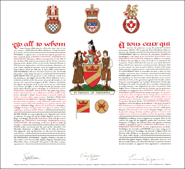 Additional InformationCreator(s)Original concept of Darrel Kennedy, Assiniboine Herald, assisted by the heralds of the Canadian Heraldic Authority. PainterD. Robert Tunstall CalligrapherLuc Saucier Recipient TypeCivil Institution