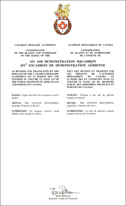 The contents of this Register are intended for research purposes only. The heraldic emblems found in the Register may not be reproduced in any form or in any media without the written consent of the Canadian Heraldic Authority and/or the recipient.