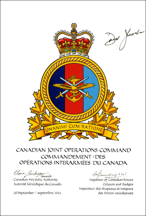 Additional InformationCreator(s)Original concept of the Department of National Defence, assisted by the heralds of the Canadian Heraldic Authority. PainterDavid Farrar CalligrapherShirley Mangione Recipient TypeMilitary Institution |