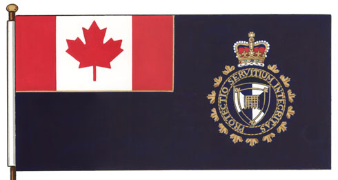 Flag of the Canada Border Services AgencyBlazonAzure the Badge, as granted by the Chief Herald of Canada on the 15th day of June 2010, a canton of the National Flag of Canada fimbriated Or; SymbolismThe blue colour evokes the blue ensigns historically used by government ships, the early means of border control. As well, it is a colour associated with law enforcement, and is the colour of the uniform of the Canada Border Services Agency (CBSA). The National Flag of Canada indicates service to Canadians. In the fly, the badge identifies the flag as that of the CBSA. |