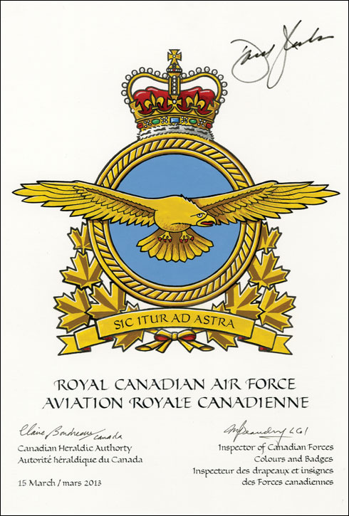 Badge of the Royal Canadian Air ForceBlazonBleu Celeste an eagle volant affronté the head to the sinister Or; SymbolismThe light blue colour and the eagle have been associated with the Royal Canadian Air Force for many decades. |