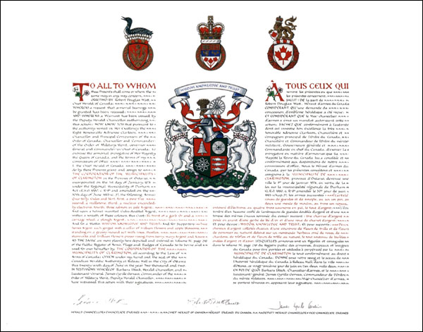 Additional InformationCreator(s)Original concept created in 1977 by Lionel Furze (today Lionel Furs), with modifications made by the Heralds of the Canadian Heraldic Authority. PainterEva Pilar-Cass CalligrapherDoris Wionzek Recipient TypeCivil Institution