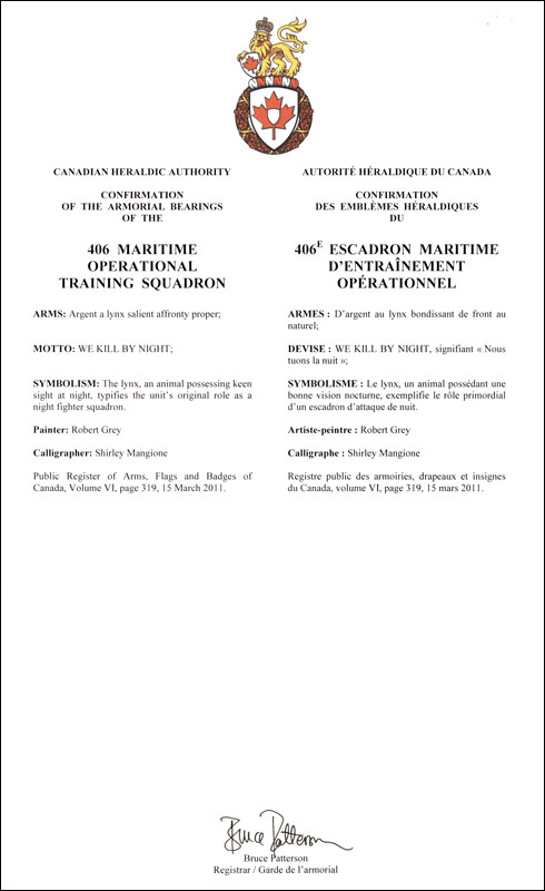 The contents of this Register are intended for research purposes only. The heraldic emblems found in the Register may not be reproduced in any form or in any media without the written consent of the Canadian Heraldic Authority and/or the recipient.