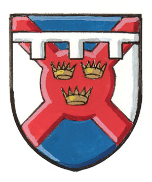 CrestBlazonIssuant from a circlet of fraises Argent a lion rampant Gules holding in its dexter paw a staff proper flying therefrom a banner Azure charged with a stag’s head caboshed Argent and in its sinister paw an abacus Or; SymbolismThe red lion is inspired by the royal arms of Scotland, connecting His Honour to his Scottish heritage. The abacus represents his career in accounting. The flag alludes to His Honour’s service in the Pictou Highlanders, which bears a stag’s head in its badge. The white flower (a fraise or strawberry flower) represents Her Honour whose maiden name of Fraser is connected to the Fraser of Lovat clan, the arms of whose chief includes three white fraises on a blue field. |