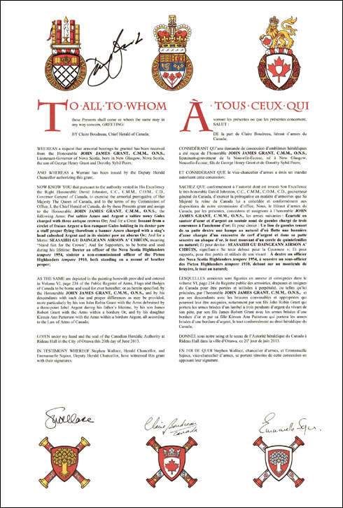Additional InformationCreator(s)Original concept of Darrel Kennedy, Assiniboine Herald, assisted by the heralds of the Canadian Heraldic Authority. PainterGordon Macpherson CalligrapherDoris Wionzek Recipient TypeIndividual Special DesignationLieutenant Governor |