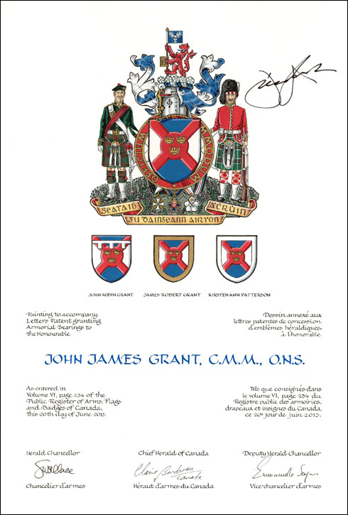 Grant of Arms and Supporters, with differences to John Robin Grant, James Robert Grant and Kirsten Ann Patterson