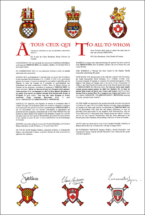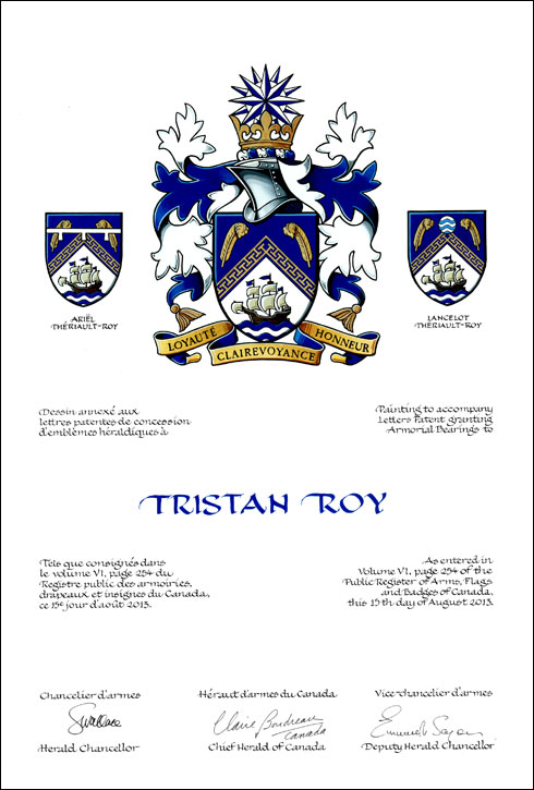 Grant of Arms, with differences to Ariël Thériault-Roy and Lancelot Thériault-Roy