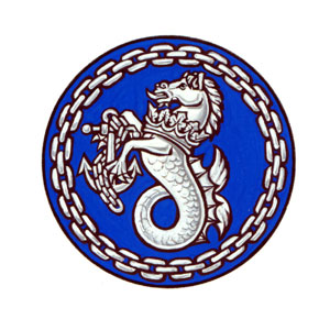 CrestBlazonA seahorse Argent crined Azure gorged with a Loyalist civil coronet Gules and holding an anchor fouled of a chain Azure; SymbolismThe seahorse emphasizes the maritime nature of the Archive’s collections, as does the anchor. The Loyalist civil coronet pays tribute to the Loyalist heritage of Prince Edward County and the focus of many of the Archive’s studies. |