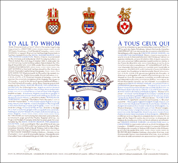 Additional InformationCreator(s)Original concept of Robbie Sprules and Bruce Patterson, Deputy Chief Herald of Canada, assisted by the heralds of the Canadian Heraldic Authority. PainterEva Pilar-Cass CalligrapherDoris Wionzek Recipient TypeCivil Institution