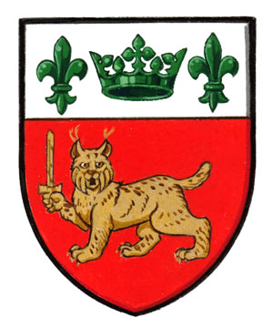 Arms of Joseph Zoël Éric BouchardBlazonGules a Canada lynx passant guardant holding in its dexter paw a sword Or, on a chief Argent two lightning bolts in saltire between two fleurs-de-lis Vert; SymbolismThe red shield and the position of the Canada lynx recall the coat of arms of Normandy, the Bouchards’ place of origin. The Canada lynx and fleur-de-lis symbolize Mr. Bouchard’s former career as a wildlife conservation officer. The fleur-de-lis represents the French fact and honours his ancestors. The fleur-de-lis is also the emblem of the Scout movement, to which Mr. Bouchard belonged. The sword, seen in coats of arms traditionally associated with Bouchard families, symbolizes justice. The two lightning bolts represent his involvement in communications, in particular his activities as a television and radio host. |