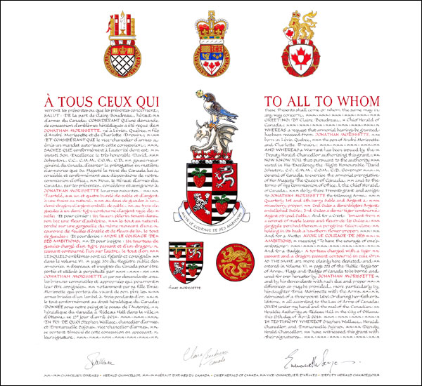 Grant of Arms and a Badge, with differences to Émie Morissette