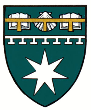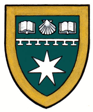 Arms of Elaine Astrid NyeBlazonVert a bar potenty in base enhanced between in chief an escallop between two open books and in base a mullet of seven points Argent; SymbolismThe star alludes to the seven gifts identified in Romans 12:6-8, several of which Mrs. Nye exemplifies in being a facilitator, administrator and care-giver. The lower edge of the chief illustrates places at a table and thus symbolizes the service of Mrs. Nye on boards of directors of several organizations. The shell represents a pilgrimage made by Dr. and Mrs. Nye to the Holy Land. The books represent their two sons, and also allude to Mrs. Nye’s experiences in teaching in schools and church. |