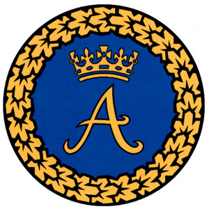 Badge of The Princess Anne, Princess RoyalBlazonA hurt environed by maple leaves and charged with the cypher of Her Royal Highness The Princess Anne, Princess Royal, Or; SymbolismThis badge was designed to be worn as a pin by security and logistics personnel during a Canadian tour undertaken by members of the Royal Family. It uses the personal cypher (usually the initial letter of the name ensigned by the appropriate heraldic crown or coronet) or badge of the member of the Royal Family undertaking the tour, along with a particular background shape and combination of colours. |