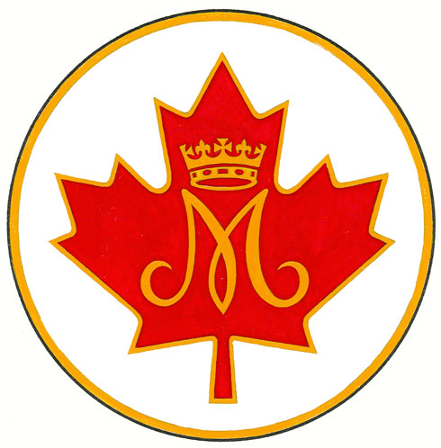 Badge of Princess Margaret, Countess of SnowdonBlazonOn a plate a maple leaf Gules charged with the cypher of Her Royal Highness The Princess Margaret Or; SymbolismThis badge was designed to be worn as a pin by security and logistics personnel during a Canadian tour undertaken by members of the Royal Family. It uses the personal cypher (usually the initial letter of the name ensigned by the appropriate heraldic crown or coronet) or badge of the member of the Royal Family undertaking the tour, along with a particular background shape and combination of colours. |