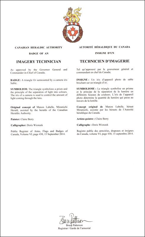 The contents of this Register are intended for research purposes only. The heraldic emblems found in the Register may not be reproduced in any form or in any media without the written consent of the Canadian Heraldic Authority and/or the recipient.