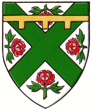 Arms of Deborah Michelle PenningtonBlazonArgent a saltire Vert between four peonies slipped and leaved, flowers inward proper; SymbolismThe red peony is a popular symbol of Serbia, used extensively in embroidered decoration. It thus refers to Mrs. Pennington’s maternal heritage from Serbia. |