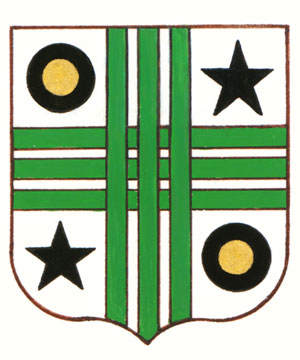 Arms of Hubert FafardBlazonArgent a cross triparted Vert between 1st and 4th a pellet and 2nd and 3rd a mullet Sable; SymbolismThe cross formed by two sets of three bands represents Trois-Rivières, where the first Fafards settled in New France, as well as Mr. Fafard’s involvement with the Military and Hospitaller Order of Saint Lazarus of Jerusalem, which is symbolized by a green cross. The black stars are from the arms of the town of Lisieux, in France, where the Fafards originated. The two circles represent hockey pucks and Mr. Fafard’s passion for the sport. |