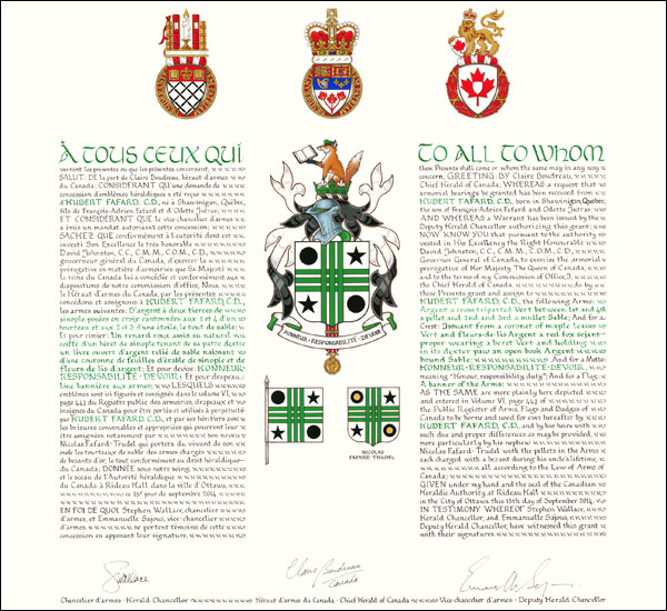 Grant of Arms and Flag, with differences to Nicolas Fafard-Trudel