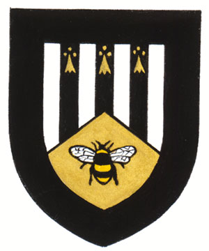 Arms of Grant David JohnsonBlazonSable on an escutcheon Argent three pallets Sable and a point pointed Or charged with a bee volant proper; SymbolismBlack and white are the basic colours of communication design, representing Mr. Johnson’s profession. The white bands represent the members of his immediate family. The alternating pattern of black and white bands represents the ocean. Yellow, the principal colour of the arms of Scotland, represents Mr. Johnson’s ancestry and origins in Nova Scotia. The bee, a favoured symbol of the Johnson family, represents service and industriousness. |
