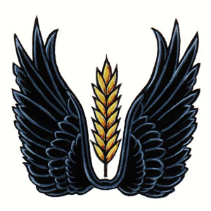 Badge of Town of High LevelBlazonA head of wheat Or within a vol Sable; SymbolismTaking the shape of a lure, which is used in falconry to train young raptors, this design combines raven wings, alluding to continued change, and a wheat stalk, acknowledging that High Level is one of the northernmost agricultural towns in Canada. |