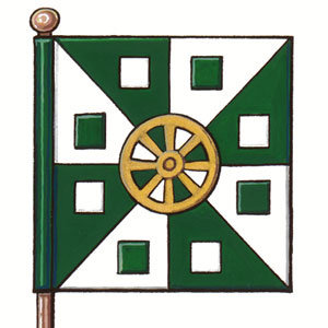 Arms of Glenn Frederick CartwrightBlazonGyronny Vert and Argent, a wheel Or environed by squares counterchanged; SymbolismThe intersecting lines represent lines of transportation and communications, interests of Dr. Cartwright’s. The wheel alludes to the name Cartwright, meaning a maker of carts, and to Dr. Cartwright’s interest in railway history. The squares surrounding the wheel allude to integrated circuits (computer chips), and thus to Dr. Cartwright’s interest in computing. The green and white colours are those of the Order of St. Lazarus, an organization in which he is active. They are also the main colours of Renison University College at the University of Waterloo, of which Dr. Cartwright served as Principal. The green and gold refer to the colours of two of the universities Dr. Cartwright attended, the University of Alberta and Macdonald College at McGill University. |