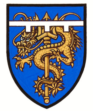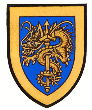 Arms of Ryan Patrick PannellBlazonAzure a trident palewise entwined by a Chinese sea-dragon Or; SymbolismBlue and yellow, as well as the trident, are taken from both the arms of Ukraine, the country of origin of Mr. Pannell’s stepfather, and the flag of Barbados, where Mr. Pannell now lives and has developed charitable programs. The colour blue and the trident also represent the sea, Mr. Pannell’s involvement with ocean conservancy charities, and his ancestors and relatives from the British Isles who were sailors. Blue and gold further refer to the arms of the de Clifford branch of his paternal family, as well as of a branch of his maternal family, the Flournoys, who were goldsmiths and lapidaries in Geneva. The dragon is in honour of Toronto’s Chinatown, where Mr. Pannell grew up, and Chinese culture, which has had considerable impact on his life. |