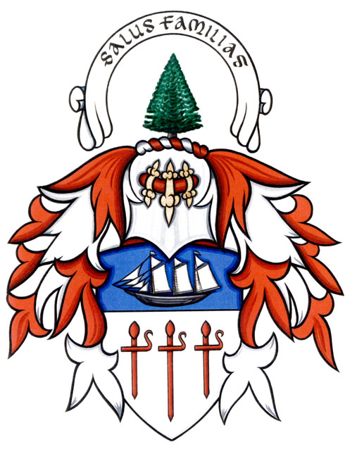Arms of George Manuel BurdenBlazonArgent three pilgrim’s staves Gules, on a chief Azure a three-masted schooner proper; SymbolismThree pilgrim’s staves are often seen in arms of other families named Burden or Burdon. The schooner represents the Robert J. Dale, built in 1914 in Liverpool, Nova Scotia, and once captained by Dr. Burden’s grandfather, Captain George Thomas Burden. It also alludes to his great-uncle, Captain Eugene Burden, who surveyed Antarctica in 1947 and for whom the Burden Passage at the northern tip of the Antarctic Peninsula was named. |