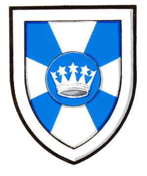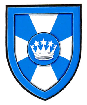 Arms of Regina Mary Ellen KeonBlazonAzure a cross patté throughout Argent overall a hurt charged with a celestial crown Argent; SymbolismThe crown of stars is a reference to Ms. Keon’s first name, Regina, which means “queen” in Latin. As this type of crown is shown in depictions of the Blessed Virgin Mary as Queen of Heaven, it also makes a reference to Ms. Keon’s second name Mary, which is also her mother’s name. The four blue segments radiating from the centre allude to Ms. Keon’s sons and to the growth of her family. |