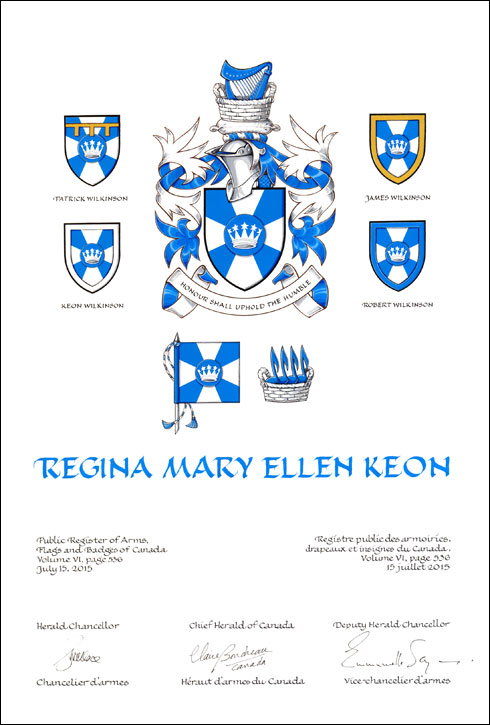 Grant of Arms, Flag and Badge, with differences to Patrick Wilkinson, James Wilkinson, Keon Wilkinson and Robert Wilkinson
