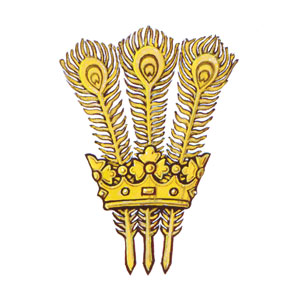 CrestBlazonIssuant from a coronet Or jewelled proper the upper rim set with acanthus leaves Or and pearls Argent, a panache of peacock feathers proper transfixed by an arrow point to the sinister Argent; SymbolismThis crest is traditionally borne with the Sas arms. |