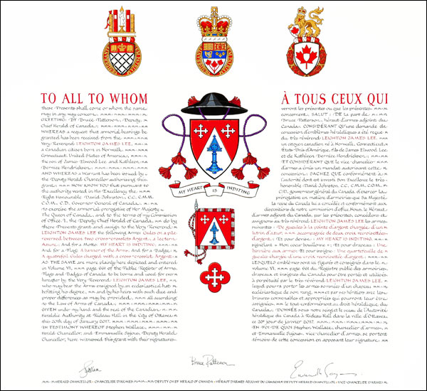 Additional InformationCreator(s)Original concept of Bruce Patterson, Deputy Chief Herald of Canada, assisted by the heralds of the Canadian Heraldic Authority. PainterRobert S. Bengry CalligrapherDoris Wionzek Recipient TypeIndividual |