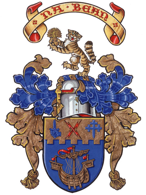 MottoBlazonNA BEAN; SymbolismShown above the crest in the traditional Scottish style, the motto, NA BEAN is a Scots Gaelic phrase meaning “Touch not”. This is an “answering motto” to the Chief’s motto, “Touch not the cat but a glove.” |