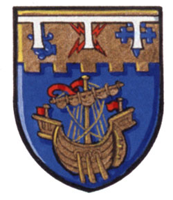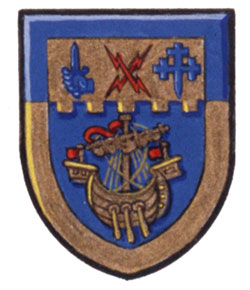 Arms of Mark Francis MacphersonBlazonAzure a lymphad sails furled oars in action Or flagged Gules, on a chief embattled Or two lightning flashes in saltire Gules between a dexter hand couped holding a dagger paleways and a cross crosslet fitché Azure; SymbolismThe design is based on the arms of the Chief of the Clan, Macpherson of Cluny, which features a gold ship (derived from the lymphad in the arms of the Lords of the Isles), a hand holding a dagger (an indication of the part played by the Clan Macpherson in overthrowing the Cummings of Badenoch, enemies of Robert the Bruce), and a cross crosslet (an allusion to the surname, which means “son of the parson”). Gold and blue are the traditional Macpherson colours. The chief is embattled to suggest Mr. Macpherson’s military background, and the two red lightning flashes reflect his interest in the field of communication, both in his career in electrical engineering and telecommunications, and in his involvement in amateur radio organizations. |