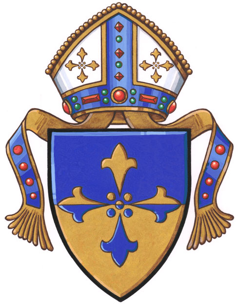 Arms of The Synod of the Diocese of Brandon (also known as the Synode du Diocèse de Brandon)BlazonPer fess Azure and Or a cross of four ermine spots in cross counterchanged; SymbolismThe division of the shield represents the geography of the diocese, with the Canadian Shield in the north and prairie in the south. The use of the division and the contrasting colours also refers to the different but complementary aspects of the composition of the diocese: rural/urban, Indigenous/non-Indigenous, etc. The blue colour is associated with the waters of baptism, and with the creator in First Nations traditions. The ermine spots are taken from the arms of the Diocese of Rupert’s Land, the original diocese of western Canada out of which Brandon was formed. They allude to the importance of the fur trade in the history of the region. Arranged as a cross, they indicate that the diocese is a Christian ecclesiastical jurisdiction, and the fact that the cross is made of separate elements alludes to the coming together of Christians within the diocese. |