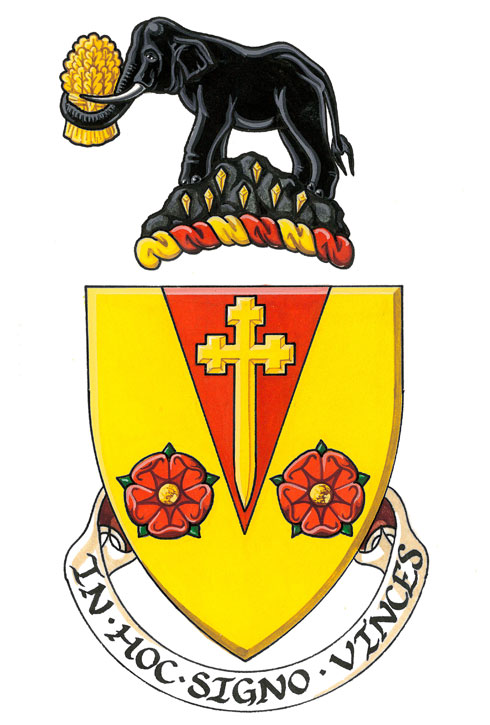 CrestBlazonAn elephant statant Sable tusked Argent holding in the trunk a garb Or, upon a rock proper semé of Passion nails Or; SymbolismThe Canadian Heraldic Authority does not have confirmed symbolism for this emblem. The following comments are hypotheses only. The elephant possibly refers to the elephant of the coat of arms of the Crown colony of Ceylon, Archdeacon Knowles’ birthplace, while the garb of wheat possibly refers to Saskatchewan, where he settled. |