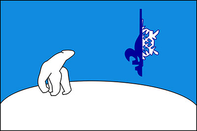 Franco-Ténois FlagBlazonBleu Céleste on a base enarched Argent to the dexter a polar bear passant reguardant proper, in the sinister canton a fleur-de-lis Azure dimidiating a snowflake Argent; SymbolismThe blue represents the Francophonie, while the white curve represents the 60th parallel, beyond which lie the Northwest Territories. The bear symbolizes freedom, nature and wide open spaces. The fleur-de-lis and snowflake represent the Francophone community throughout the North. This symbolism is based on a variety of publicly-available sources. |