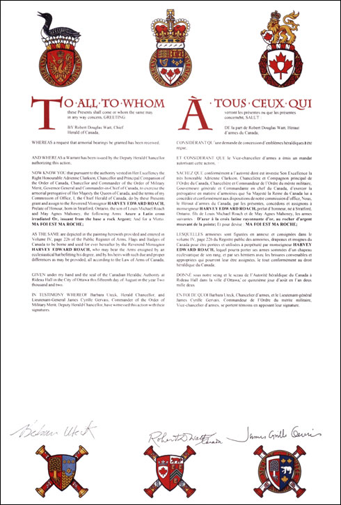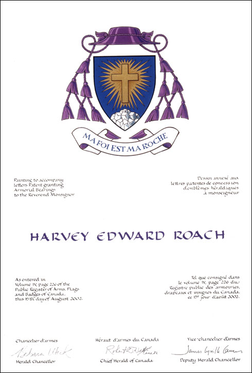 The contents of this Register are intended for research purposes only. The heraldic emblems found in the Register may not be reproduced in any form or in any media without the written consent of the Canadian Heraldic Authority and/or the recipient.