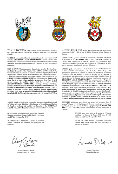 The contents of this Register are intended for research purposes only. The heraldic emblems found in the Register may not be reproduced in any form or in any media without the written consent of the Canadian Heraldic Authority and/or the recipient.