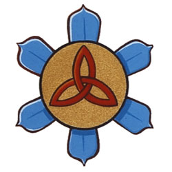 Badge of Colin Alistair Mecum FlemingBlazonOn a Bermudiana flower (Sisyrinchium bermudianum) Azure a bezant charged with a triquetra Gules; SymbolismThe Bermudiana flower is taken from the crest, and the gold disc resembles a coin and thus refers to Mr. Fleming’s profession as a Chartered Accountant. The triquetra is an ancient symbol of the Holy Trinity and thus makes a reference to Mr. Fleming’s faith as well as to Ontario, his home for many years. |