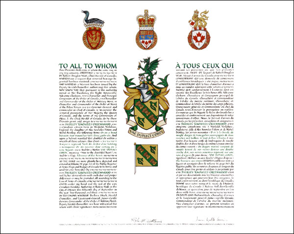 Additional InformationCreator(s)Original concept of Graham Anderson, Cowichan Herald Extraordinary, assisted by the Heralds of the Canadian Heraldic Authority PainterEva Pilar-Cass CalligrapherNancy Ellis Recipient TypeIndividual |