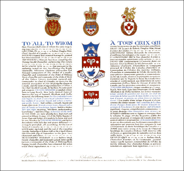 The contents of this Register are intended for research purposes only. The heraldic emblems found in the Register may not be reproduced in any form or in any media without the written consent of the Canadian Heraldic Authority and/or the recipient.